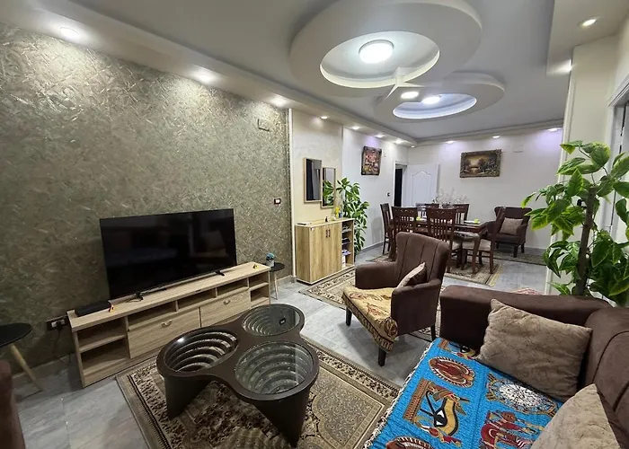 El Ultra Luxury 4Br Terrace & Garden Apartment -Dokki El El Cairo está situado a unos 10 minutos en coche del Centro Histórico del Cairo, y a 4 km del Parque Al Fustat. Este apartamento también dispone de Wi-Fi y un aparcamiento privado gratuito.